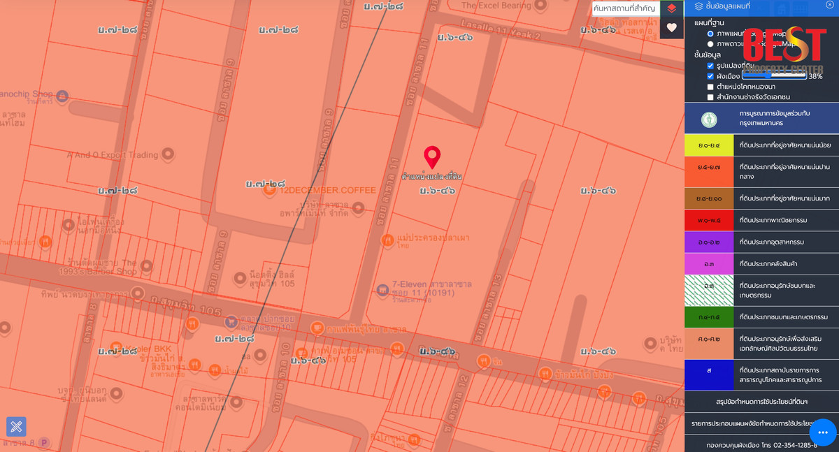 - สีส้ม ย5-ย7 ที่ดินประเภทที่อยู่อาศัยหนาแน่นปานกลาง
