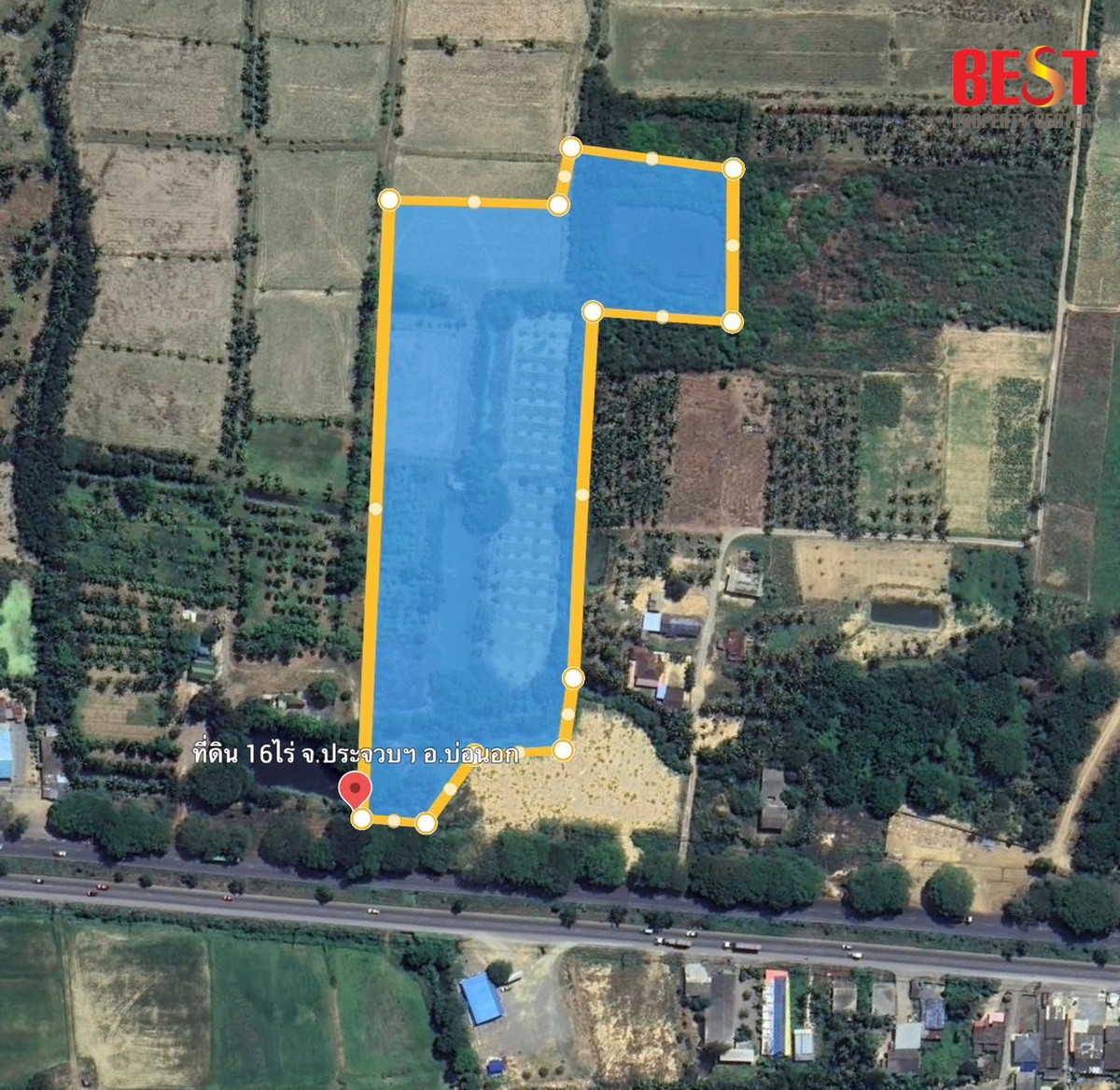 #Land for sale in Prachuap Khiri Khan #Land next to Phetkasem Road #Land for sale outside pond #Cheap land in Prachuap #Land 16 rai #Land to build a gas station # Land for warehouse #BestPropertyCenter #real estate broker #Land next to Asia Road #AH2